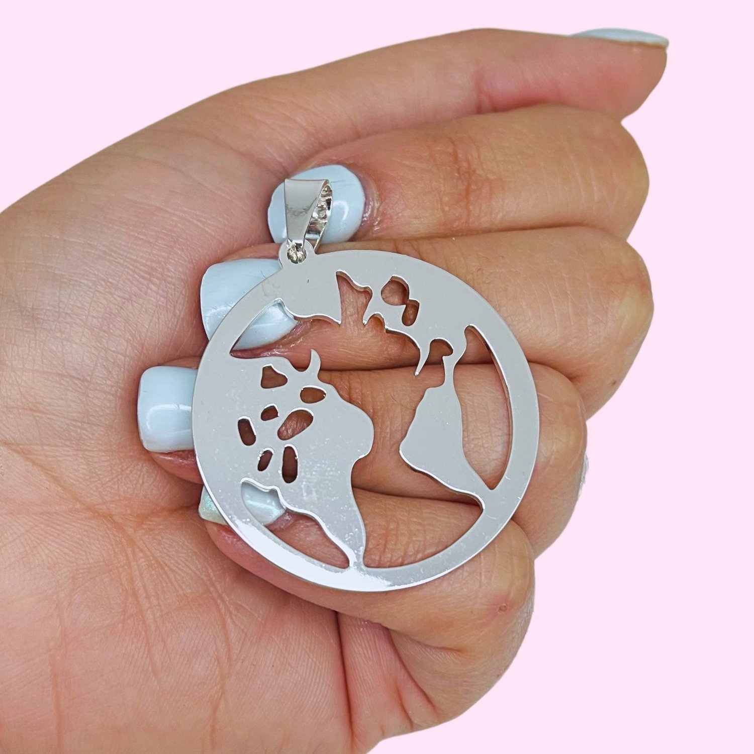 Artículo: ADO 085Dije Mundo 40mm Acero Blanco