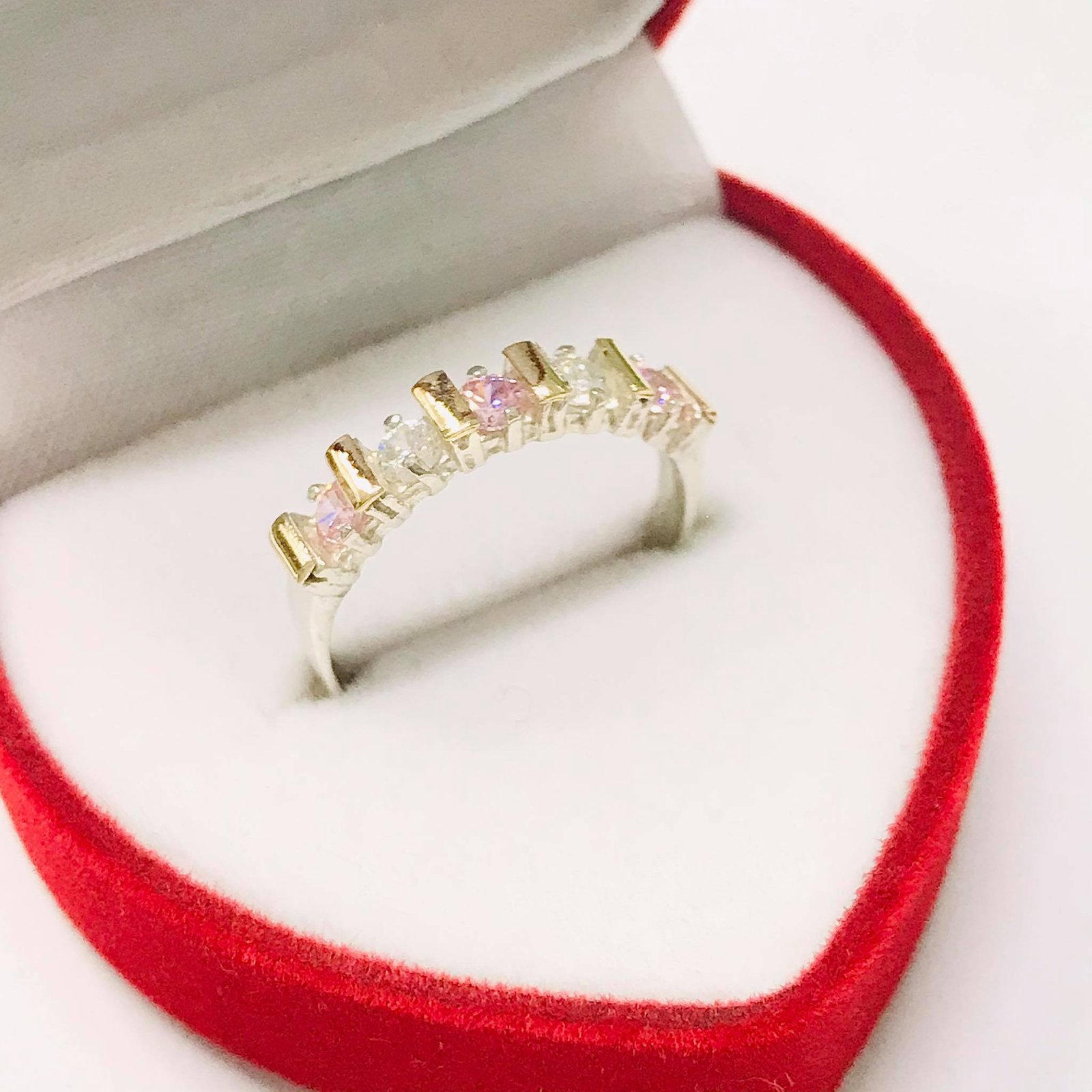 Artículo: AP 057-1Anillo medio sinfin entrecalado con cubic Rosa-Blanco