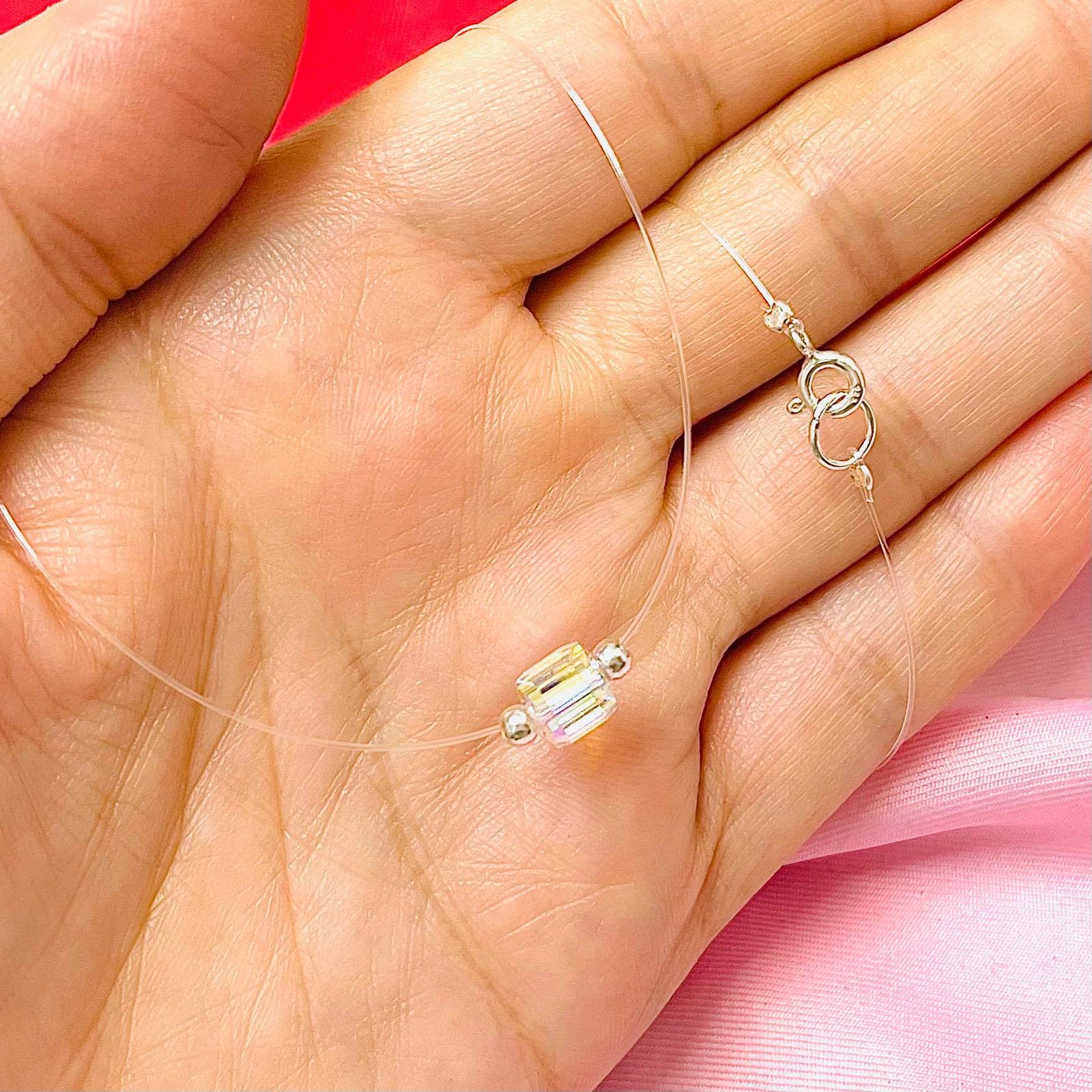 Material de Cadena: Tanza con cierre de plata