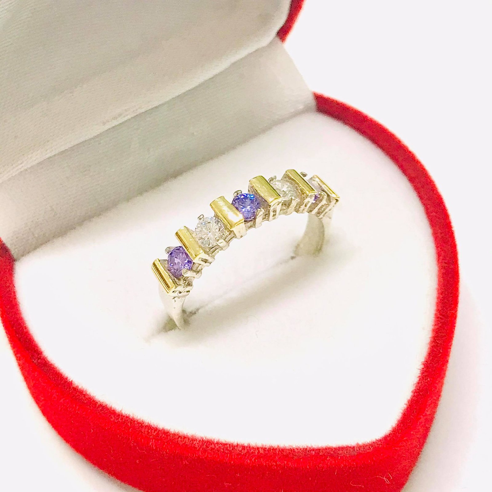 Anillo medio sinfin EVA amatista-blanco Plata y Oro