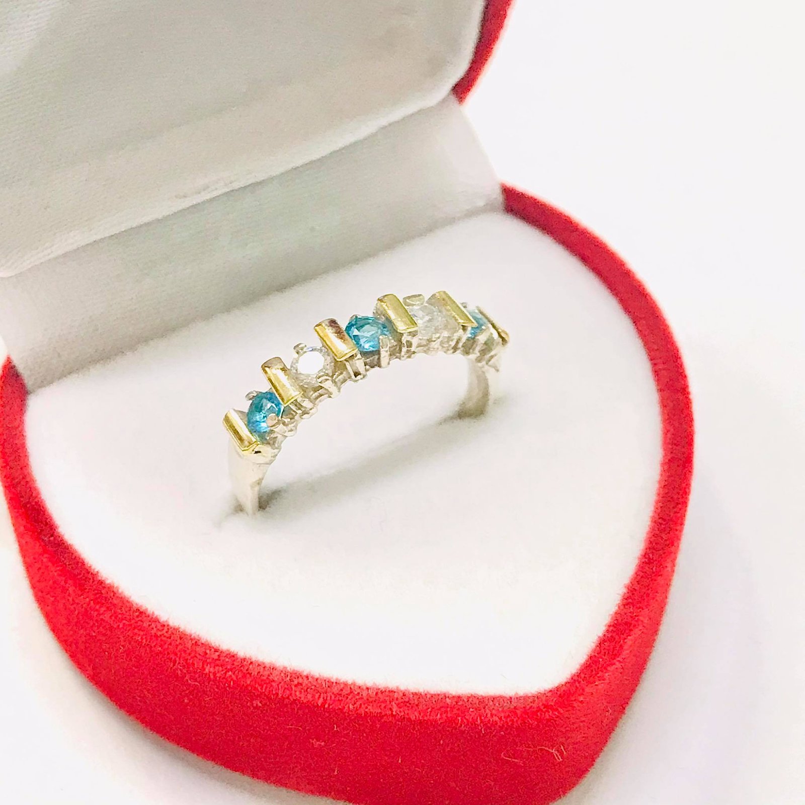 Anillo medio sinfin EVA aguamarina-blanco Plata y Oro