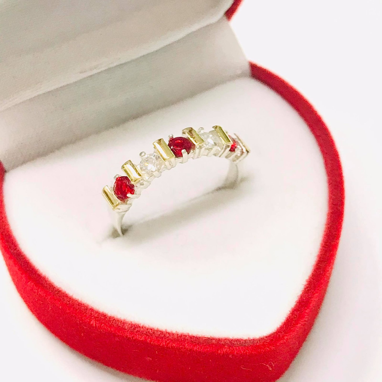 Anillo medio sinfin EVA rubi-blanco Plata y Oro