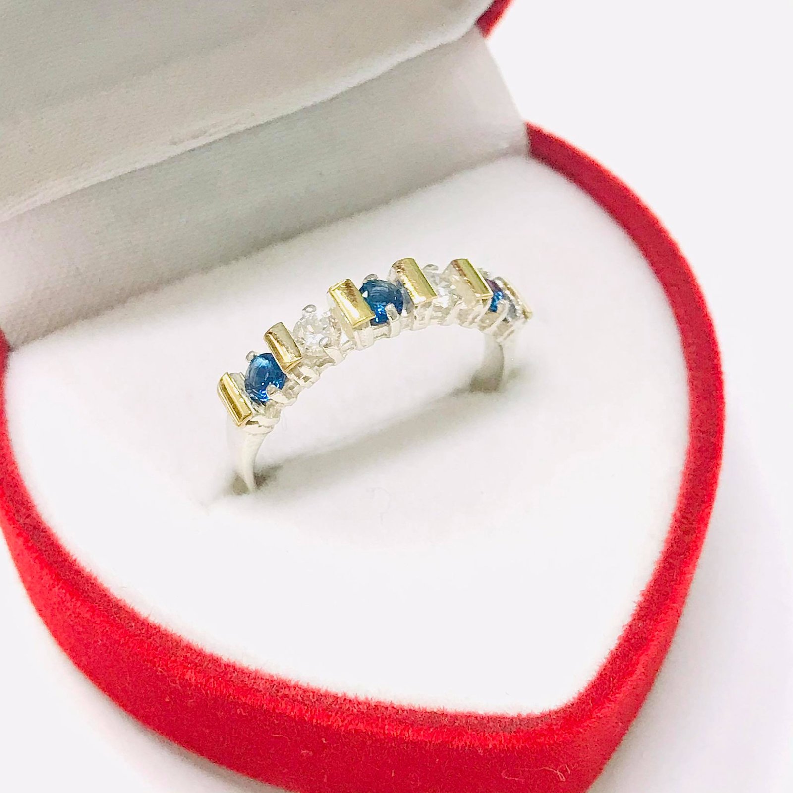 Anillo medio sinfin EVA zafiro-blanco Plata y oro