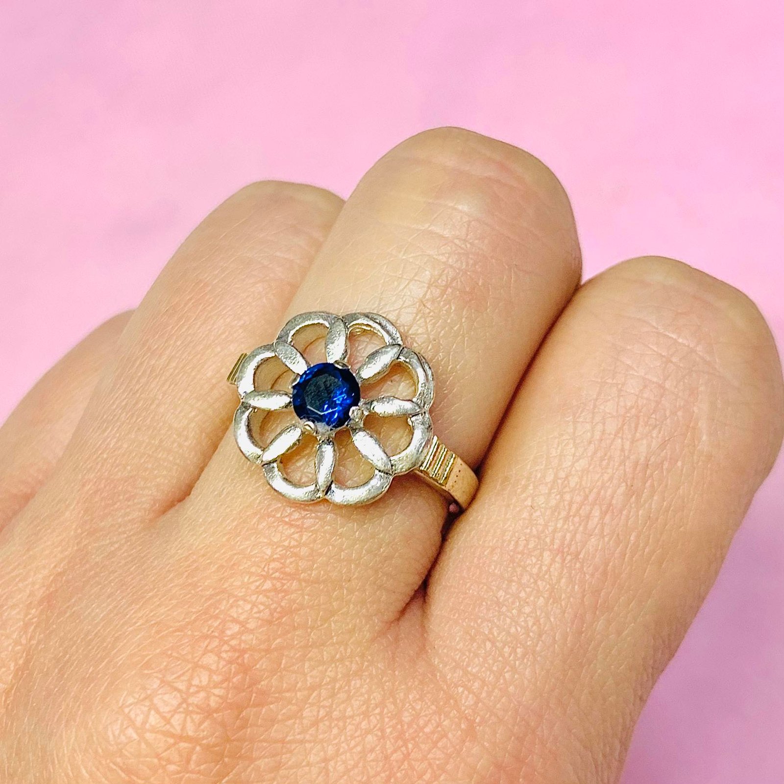 Anillo Margarita con Cubic 5mm de Plata y Oro