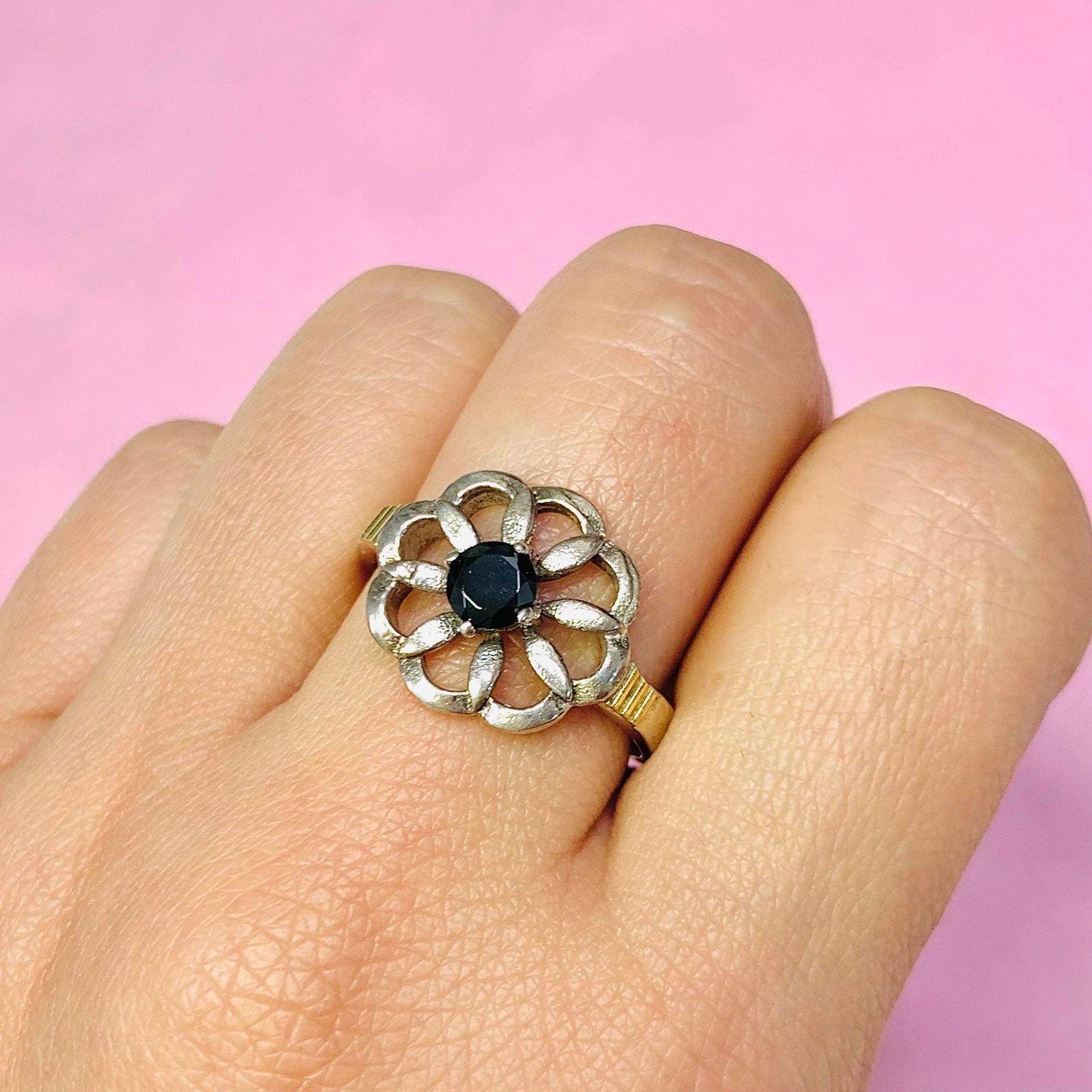 Anillo Margarita con Cubic 5mm de Plata y Oro