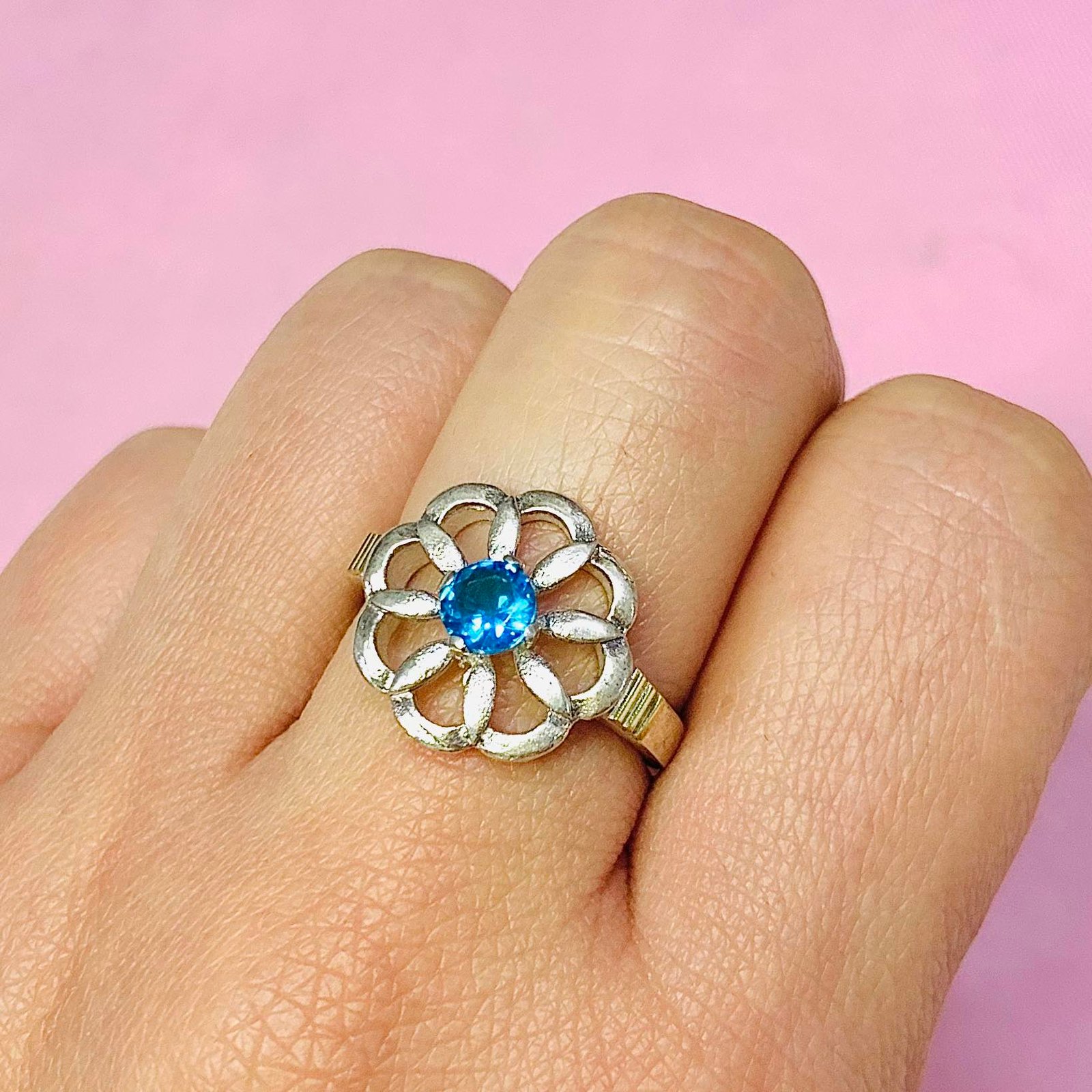 Anillo Margarita con Cubic 5mm de Plata y Oro