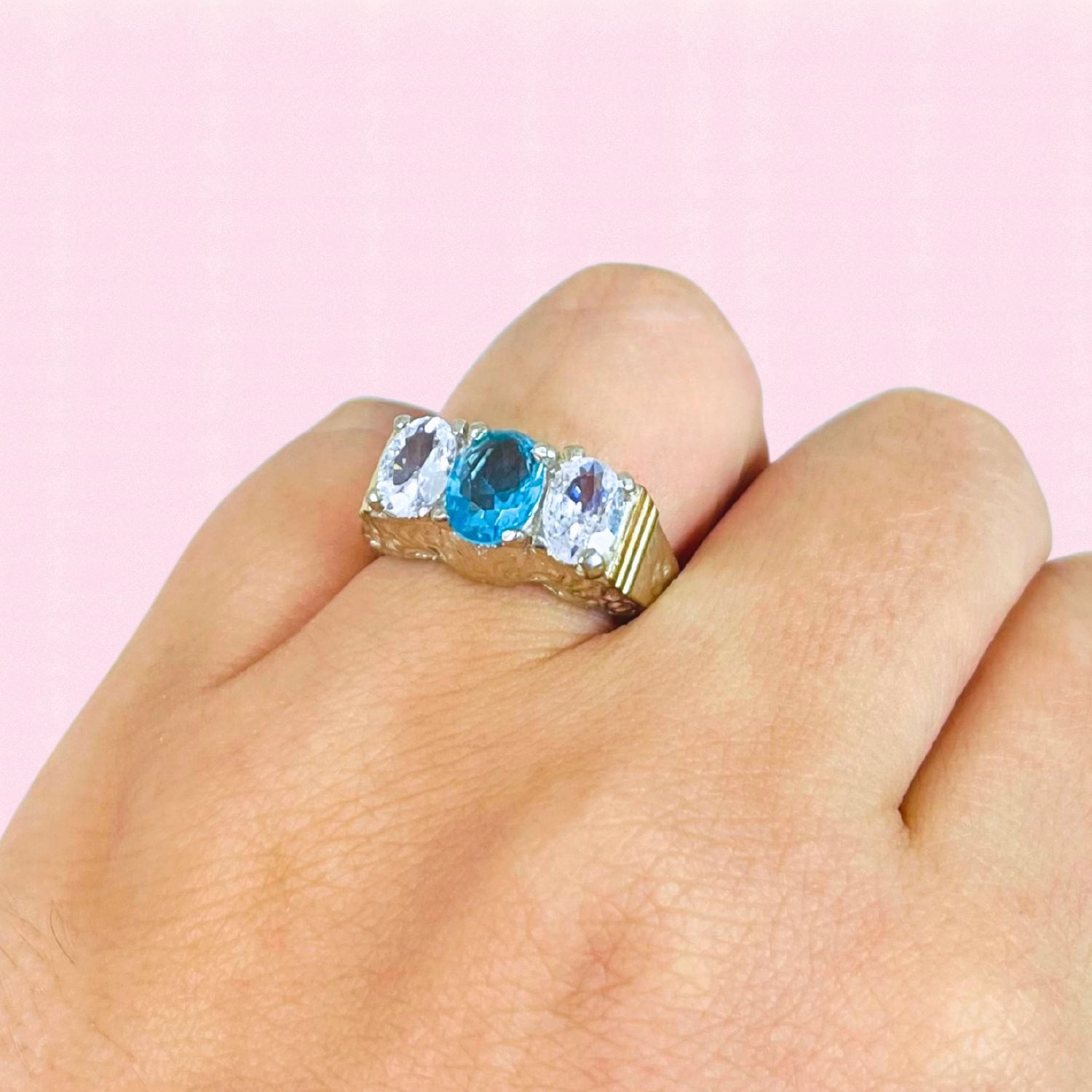 Anillo Trio Elegancia Cubic oval Agua de Plata 925 y Oro 18K
