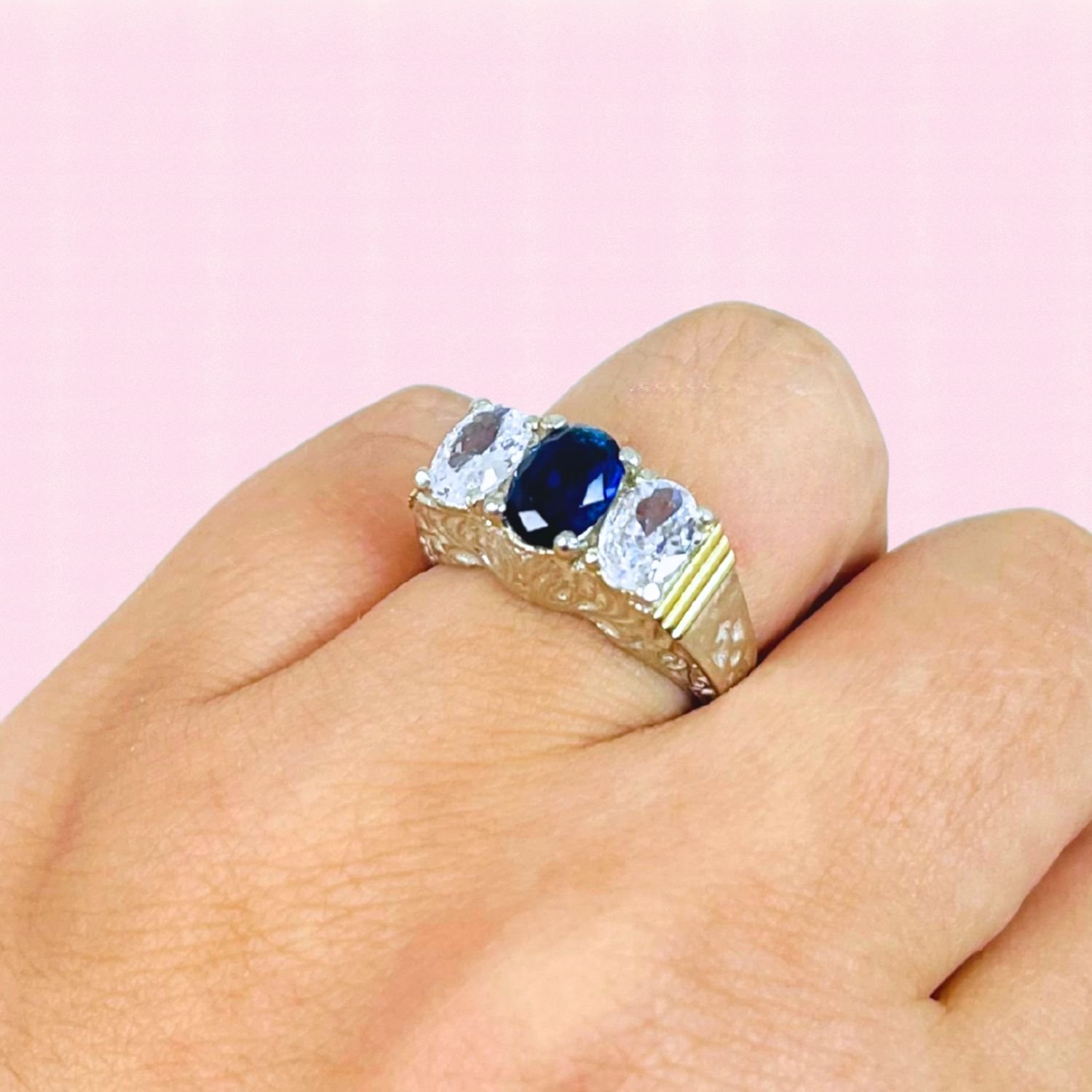 Anillo Trio Elegancia Cubic oval Zafiro de Plata 925 y Oro 18K