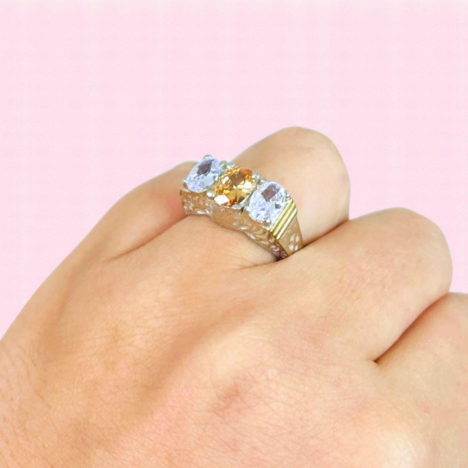 Anillo Trio Elegancia Cubic oval Ambar de Plata 925 y Oro 18K