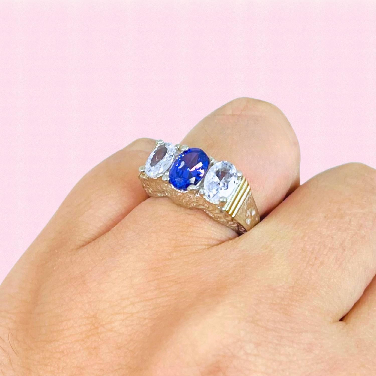 Artículo: AP 151-8Anillo Trio Elegancia Cubic oval 8x6mm de Plata y Oro