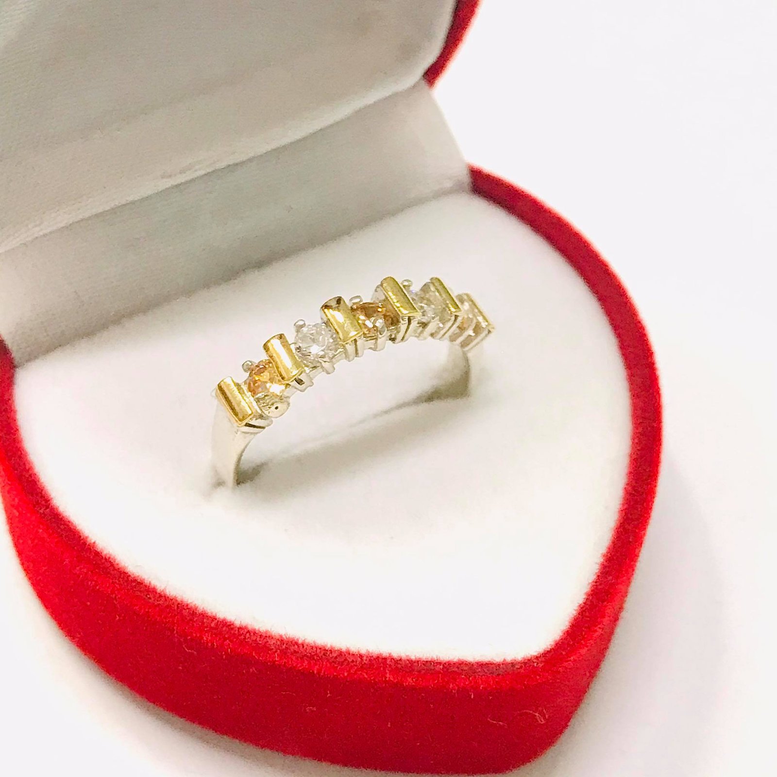 Anillo medio sinfin EVA ambar-blanco Plata y Oro