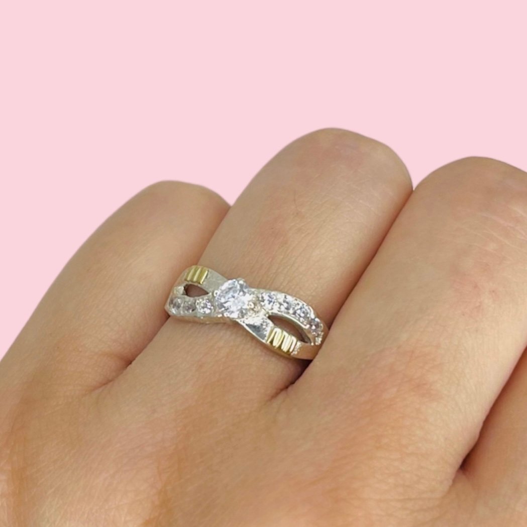 Anillo Infinito Blanco Micropave Plata y Oro