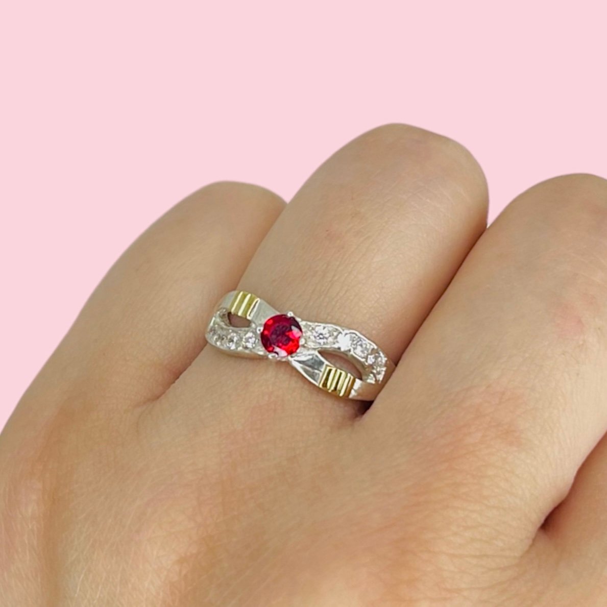 Anillo Infinito Rubi Micropave Plata y Oro