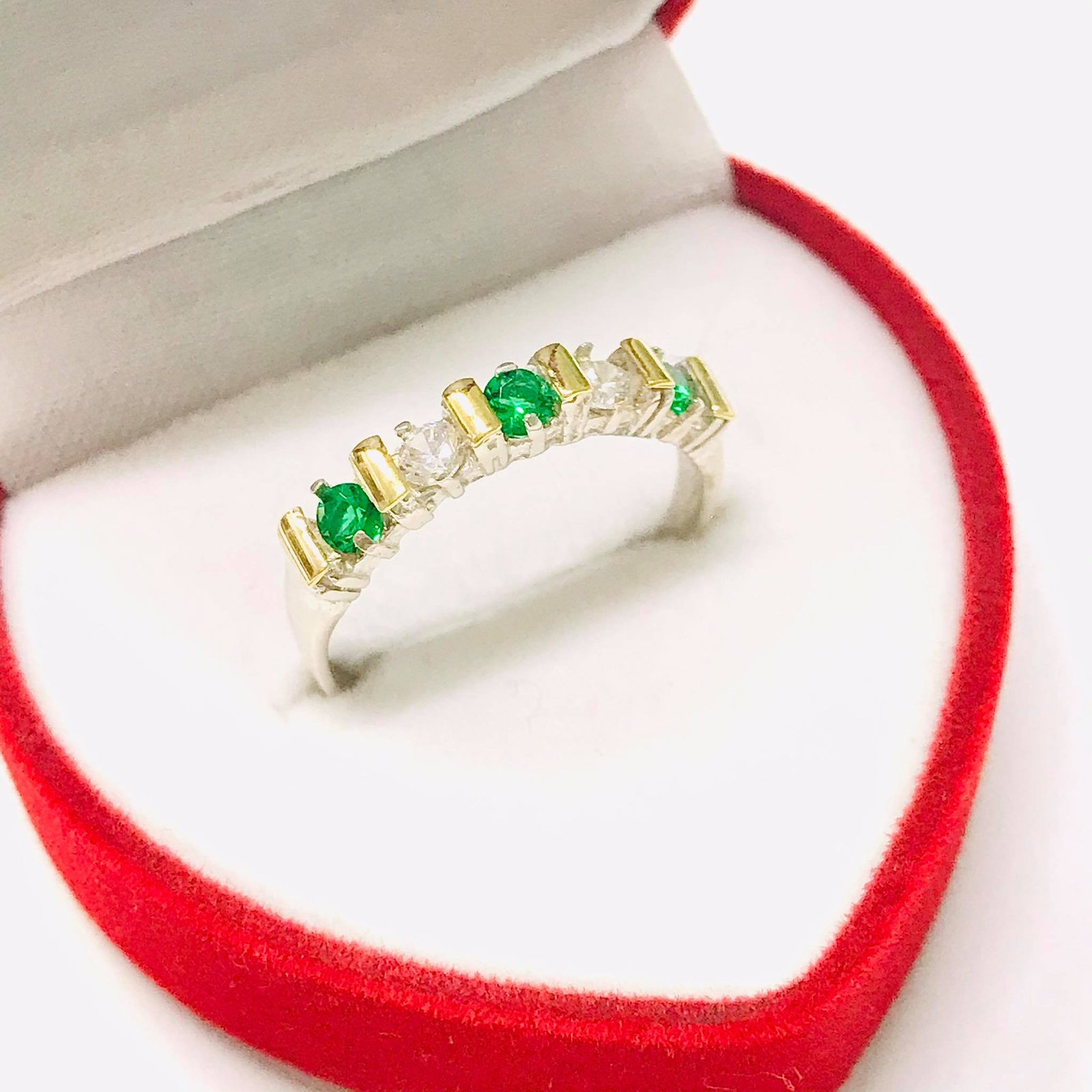 Anillo medio sinfin EVA esmeralda-blanco Plata y Oro