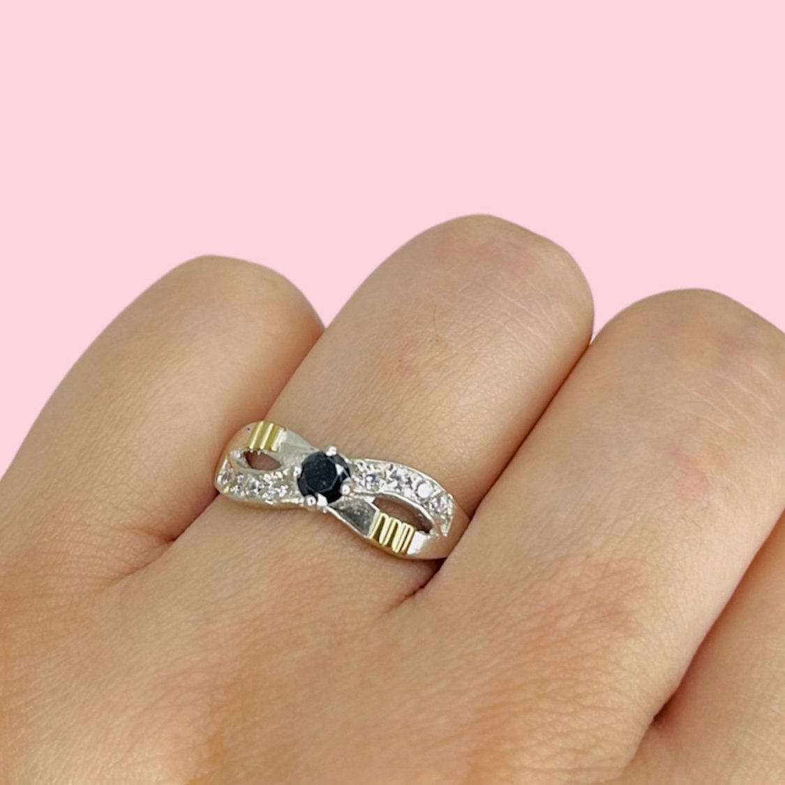 Anillo Infinito Cubic Negro Micropave Plata y Oro