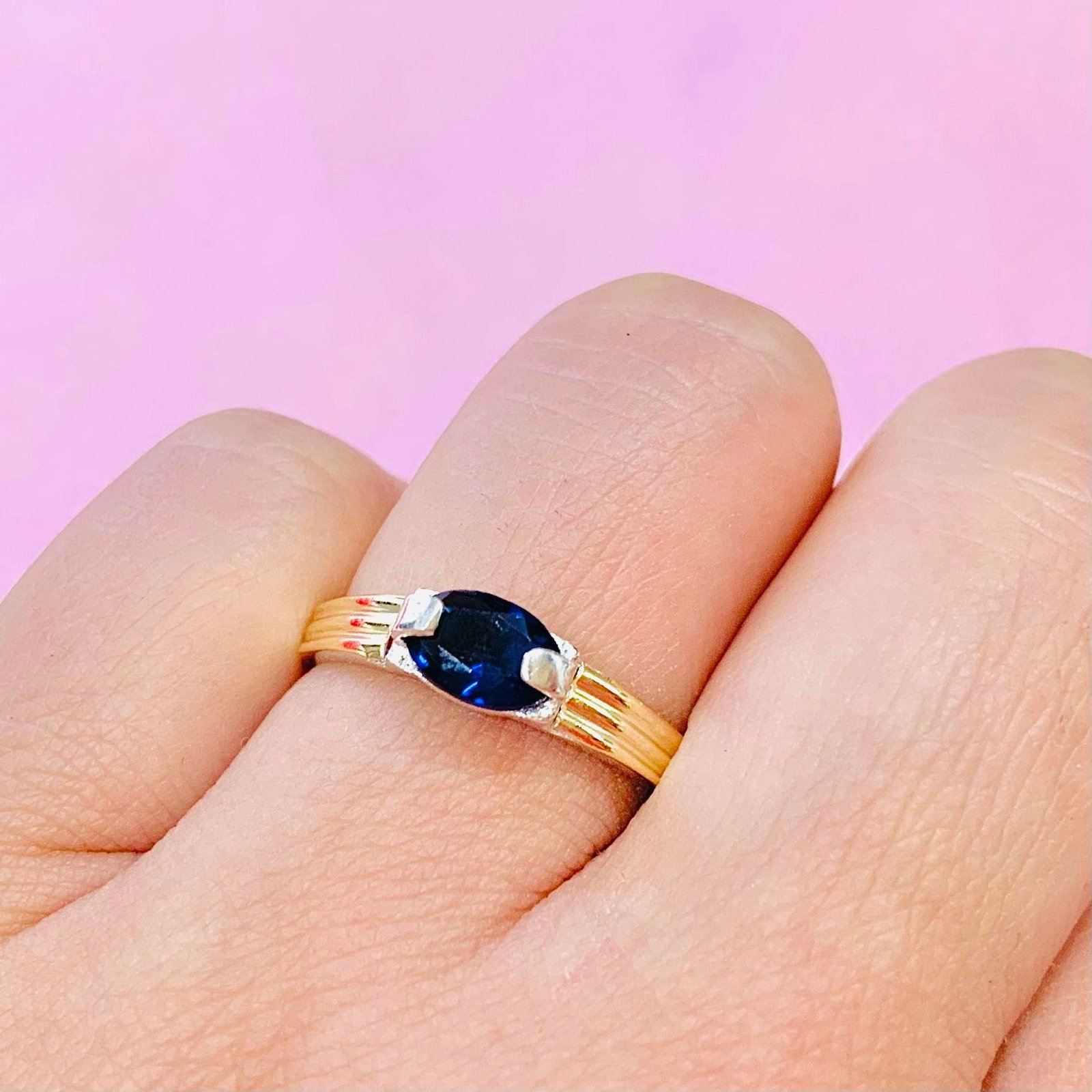 Anillo con cubic oval Chico Azul Plata y Oro