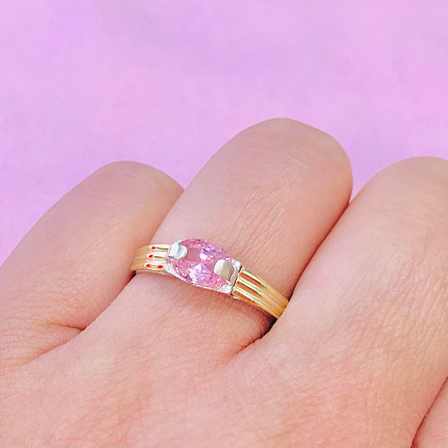 Anillo con cubic oval Chico Rosa Plata y Oro