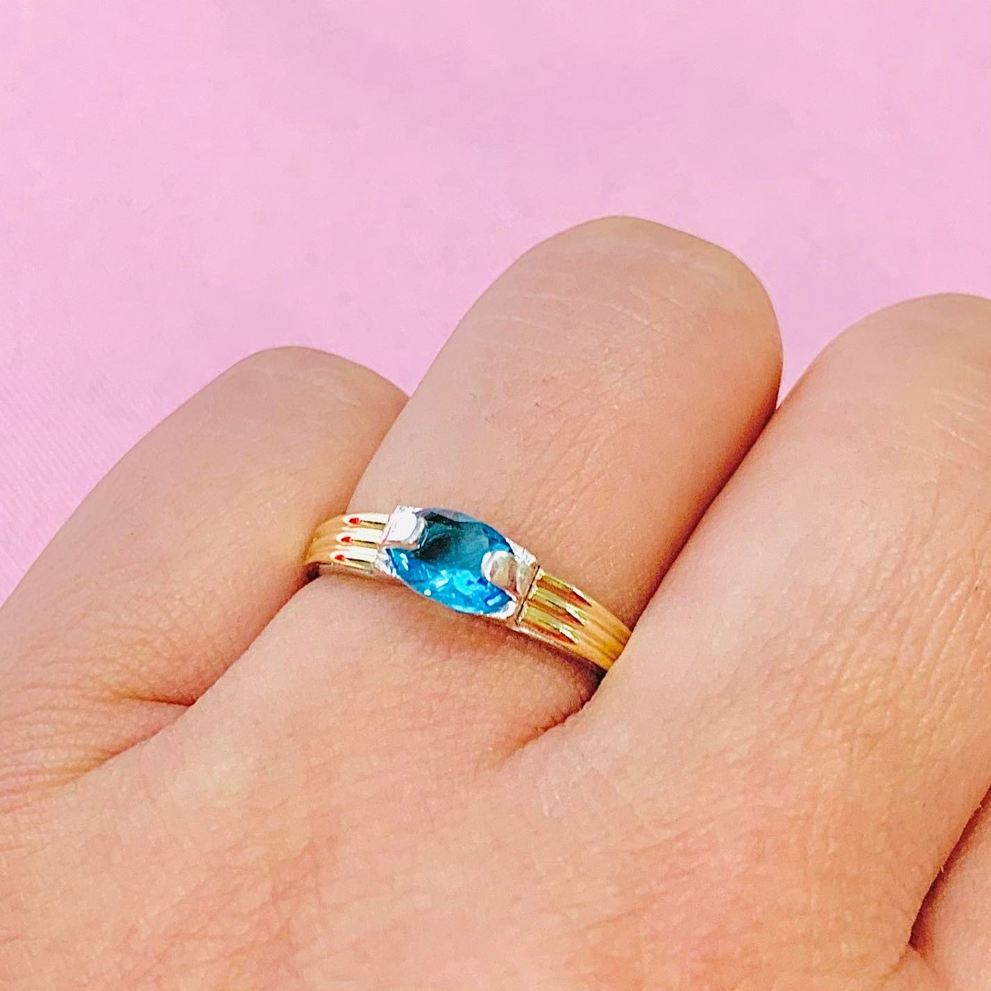 Anillo con cubic oval Chico Celeste Plata y Oro