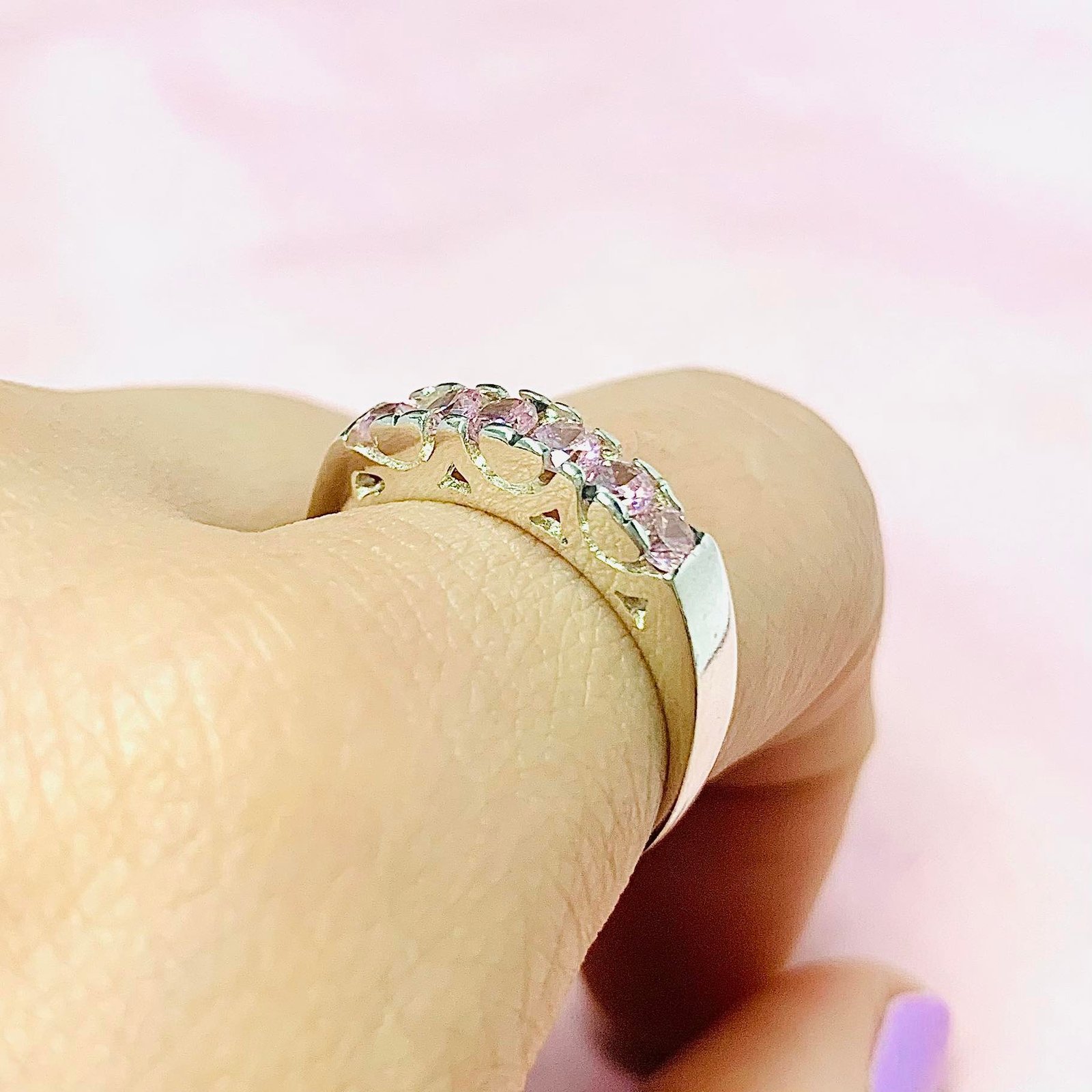 Anillo sinfin con corazones con piedra rosa Plata 925