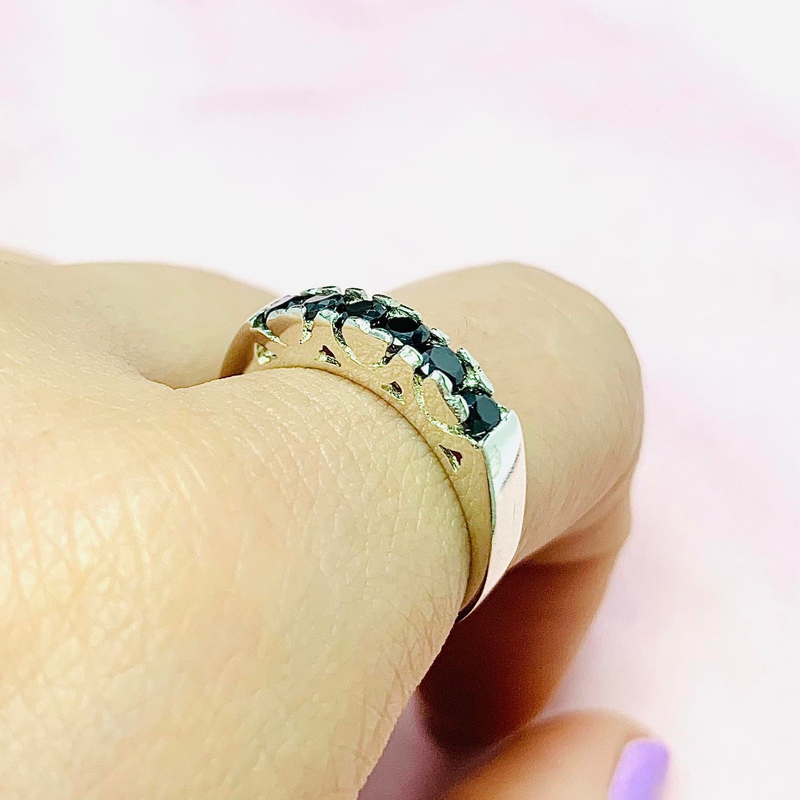 Anillo sinfin con corazones con piedra negra Plata 925