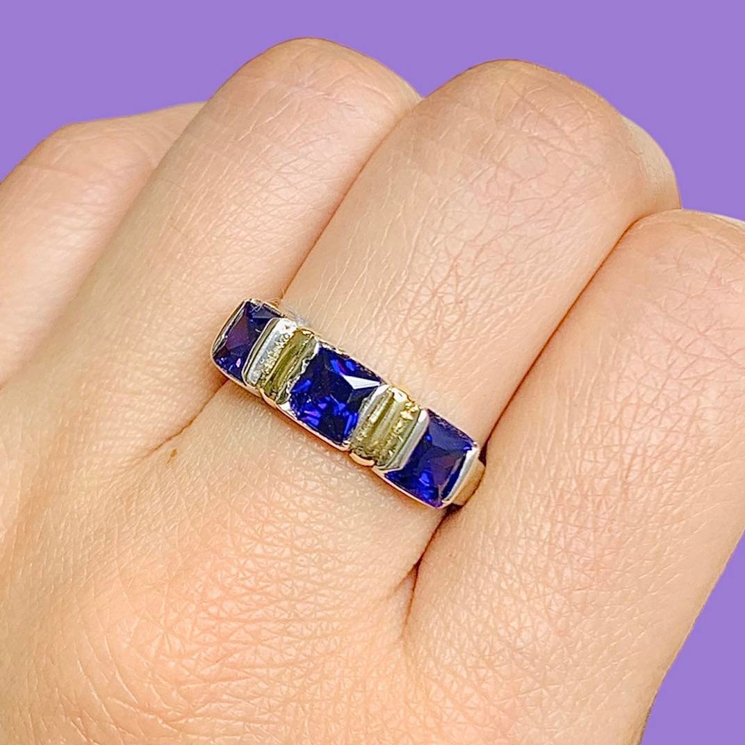 Anillo con tres cubic cuadrados Amatista de Plata y Oro
