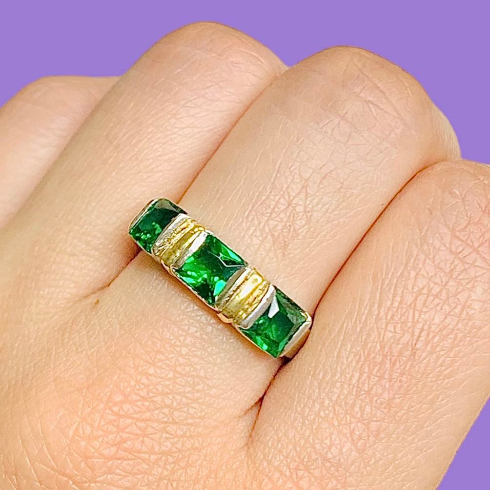 Anillo con tres cubic cuadrados Esmeralda de Plata y Oro