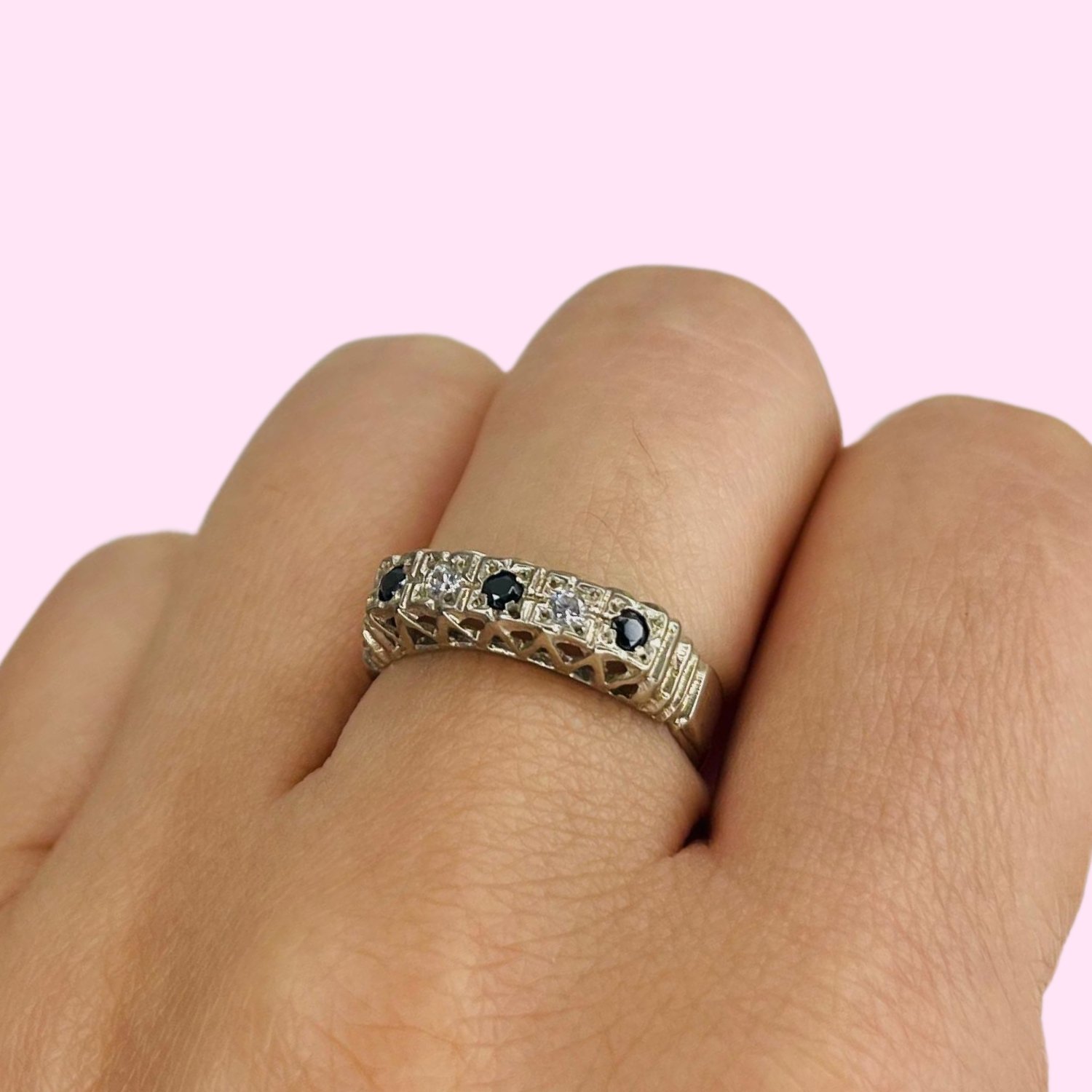 Anillo Puente Medio sinfin Negro y Blanco Plata 925