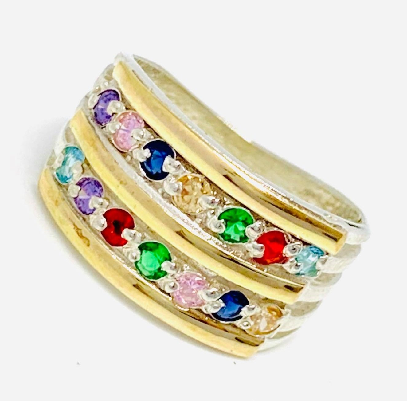 Anillo Doble Medio Sinfin cubic multicolor de Plata y Oro