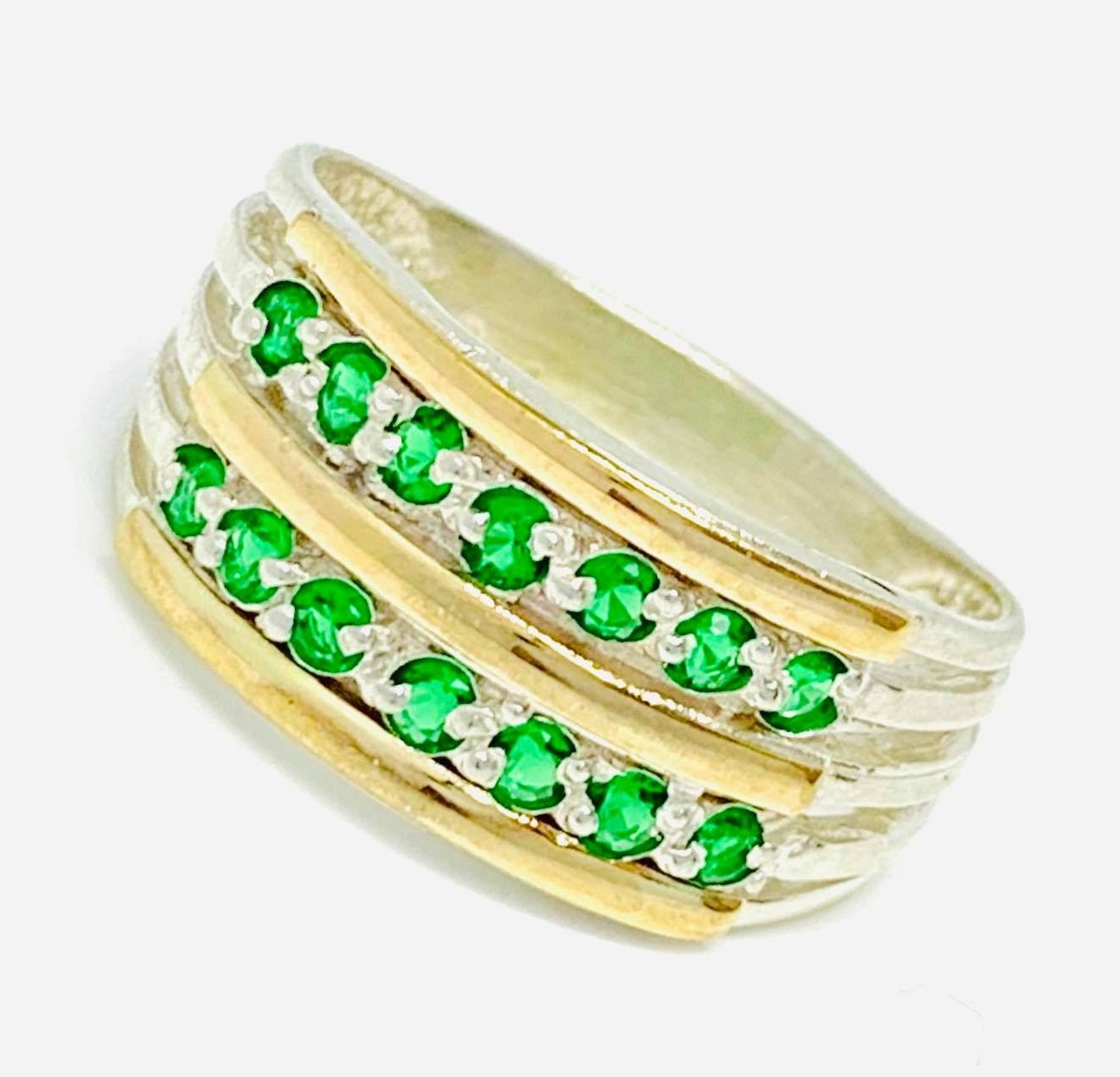 Anillo Doble Medio Sinfin cubic verde de Plata y Oro