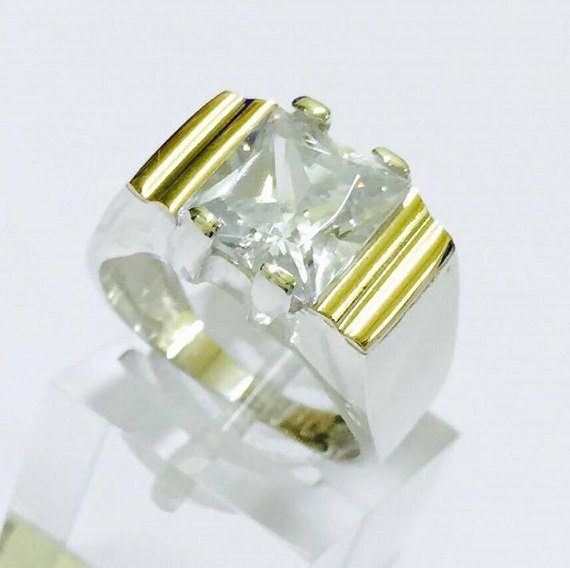Artículo: AP 062-1Anillo unisex con cubic cuadrado Blanco