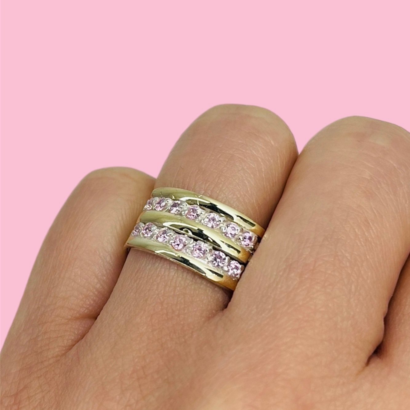 Anillo Doble Medio Sinfin cubic rosa de Plata y Oro