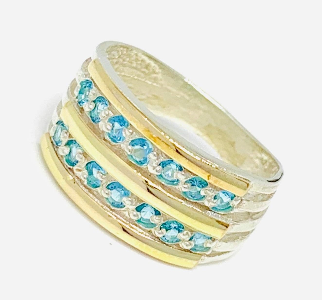Anillo Doble Medio Sinfin cubic celeste de Plata y Oro