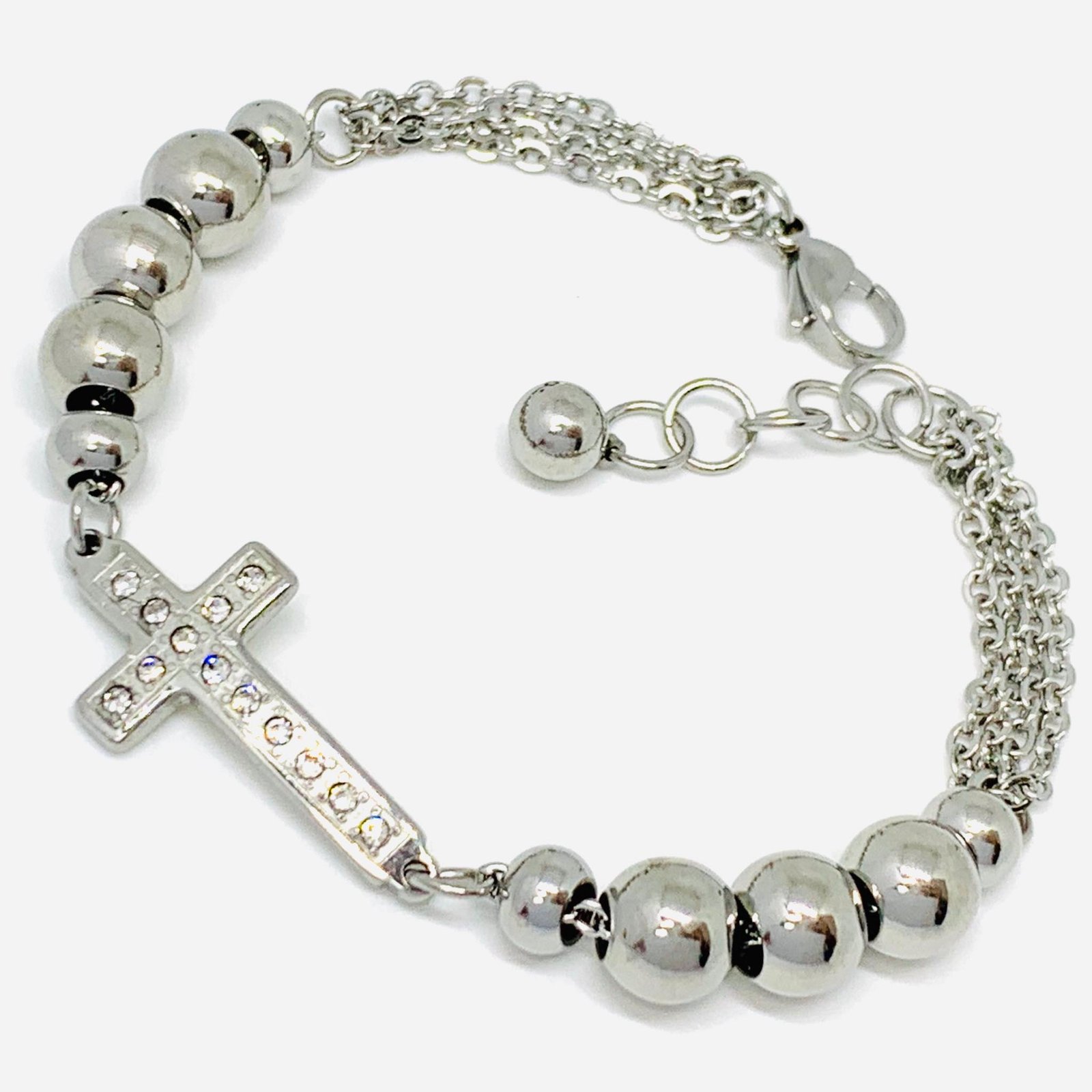 Pulsera Cruz con Strass y Bolitas de 8mm Acero QUIRURGICO