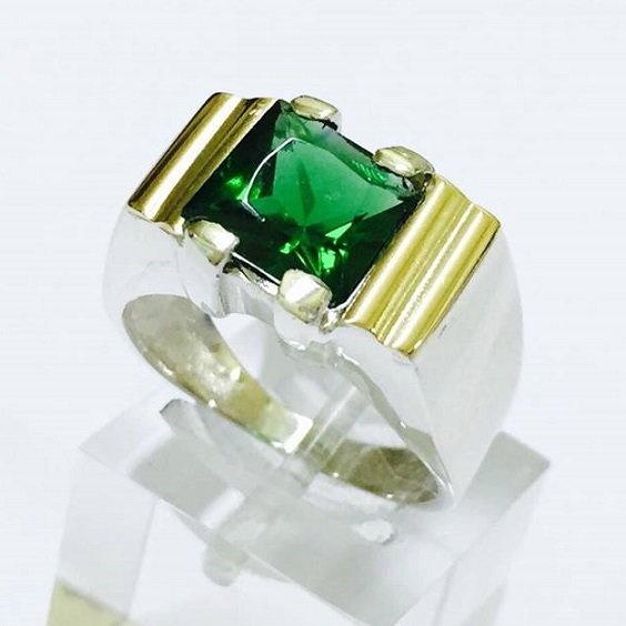 Anillo unisex cuadrado esmeralda Plata y Oro