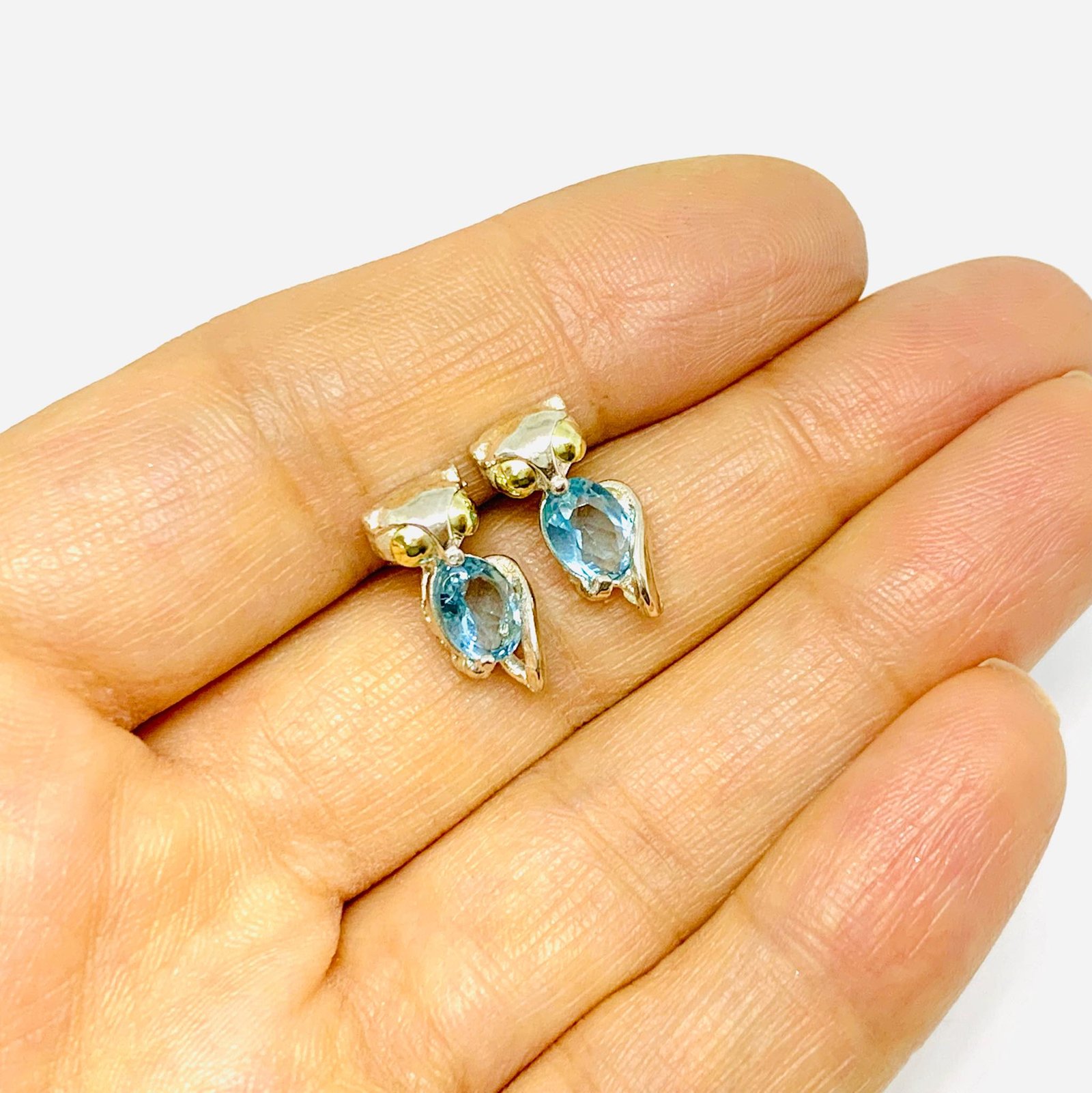 Artículo: AR 027-8Aros Gatito con cubic Aguamarina Plata y Oro
