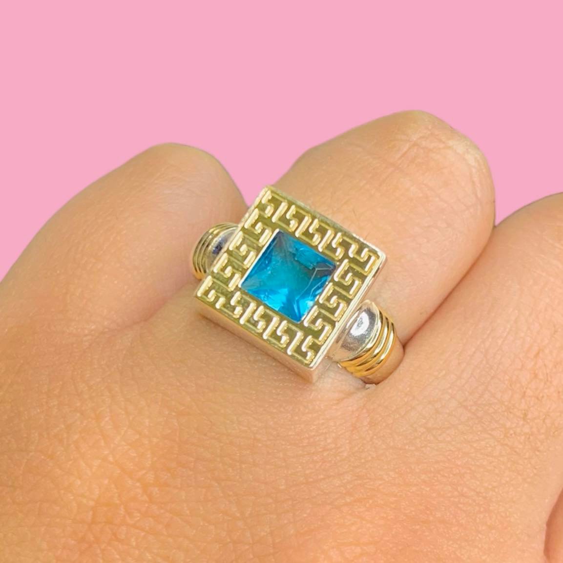 Anillo Guarda Griega Cuadrado Grande Aguamarina