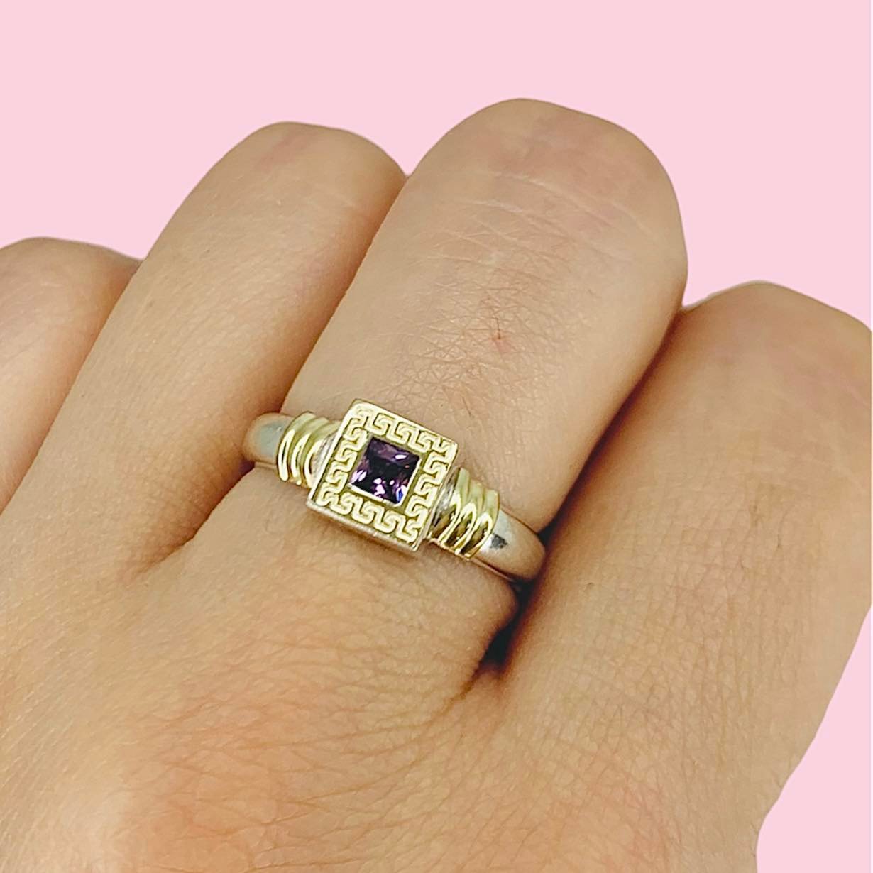 Anillo Guarda Griega Cuadrado Chico Amatista