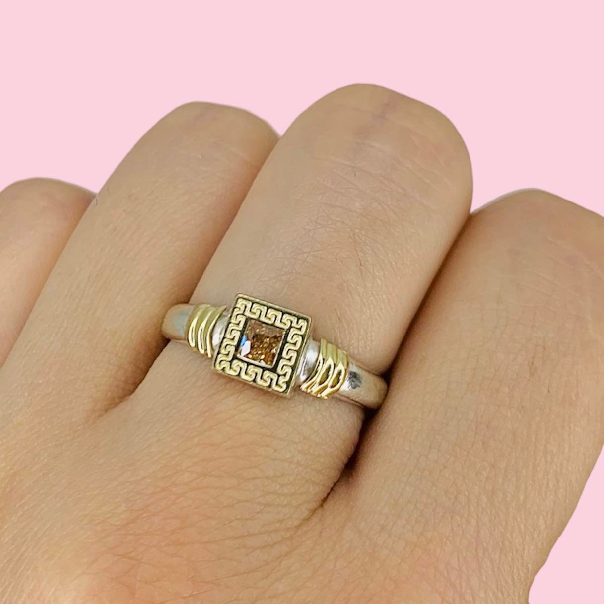 Anillo Guarda Griega Cuadrado Chico Ambar