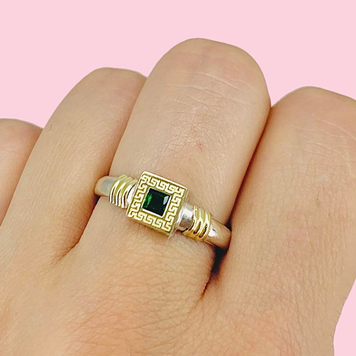 Anillo Guarda Griega Cuadrado Chico Esmeralda