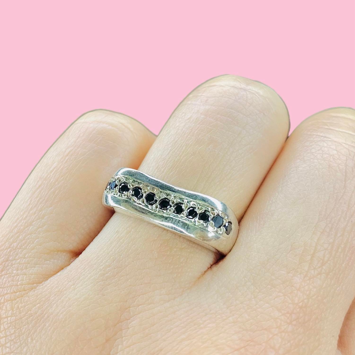 Anillo Ola con cubics Negro engarsados de Plata 925