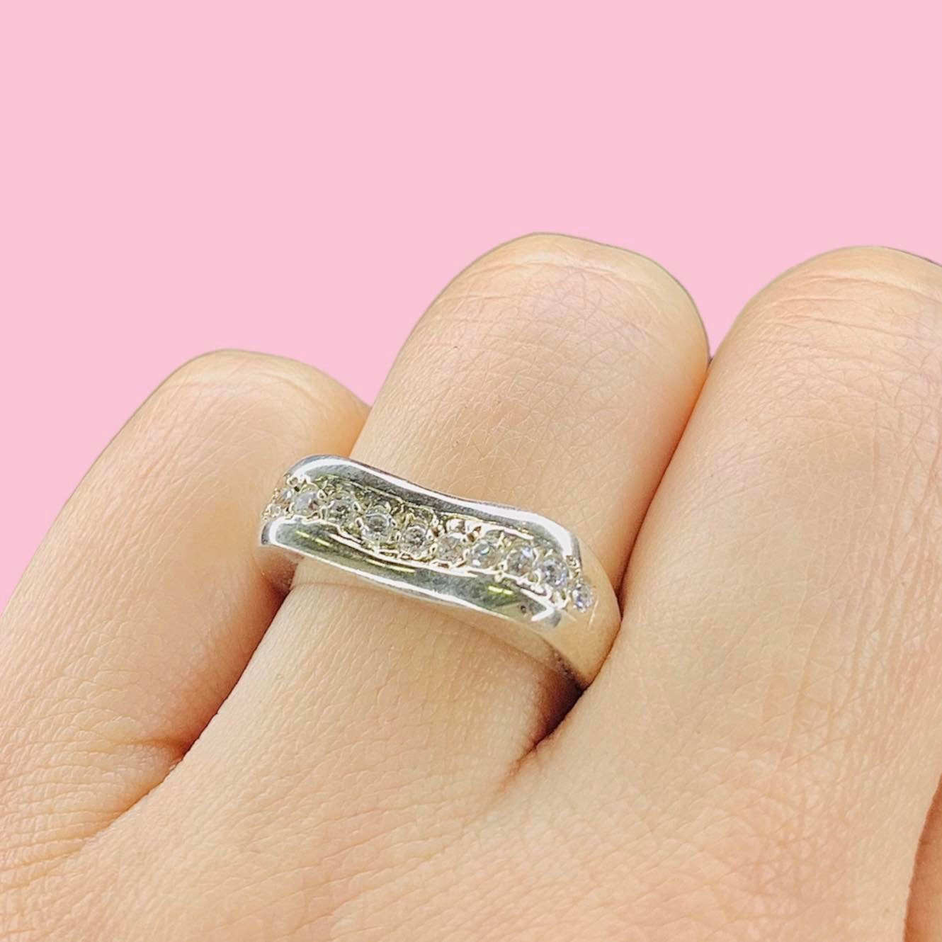 Anillo Ola con cubics Blanco engarsados de Plata 925