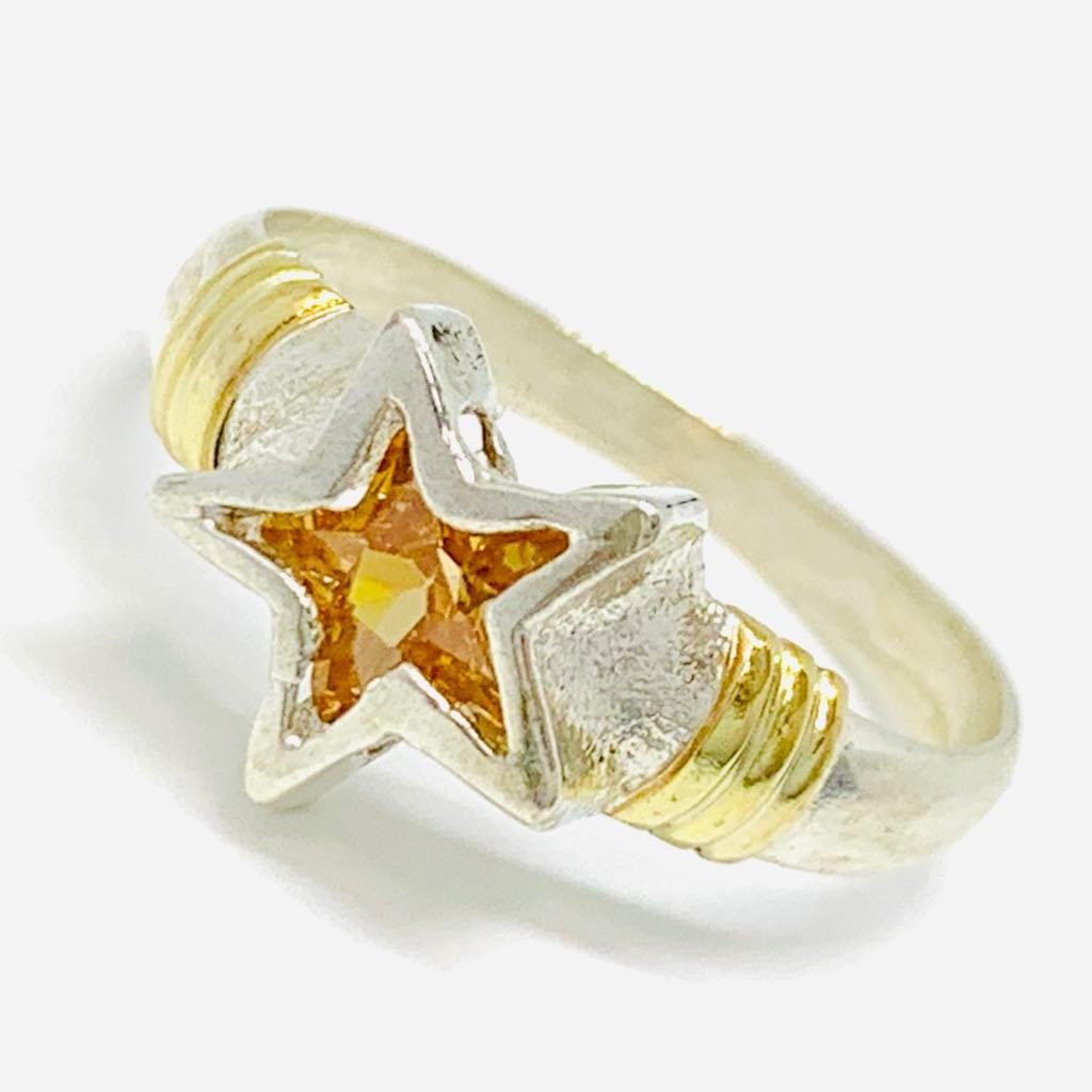 Anillo Estrella 10mm Ambar de Plata y Oro