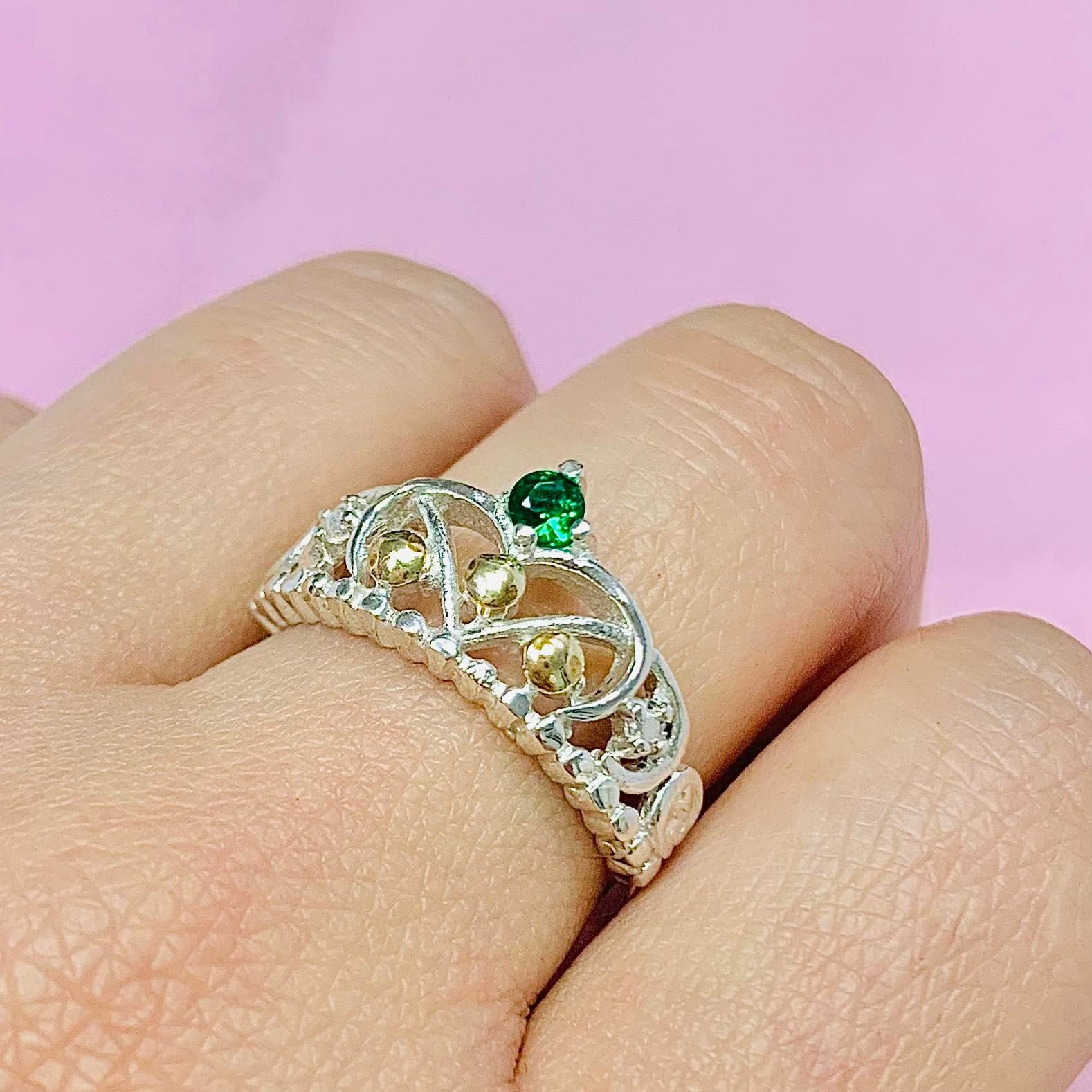 Anillo corona Amira con cubic esmeralda Plata y Oro