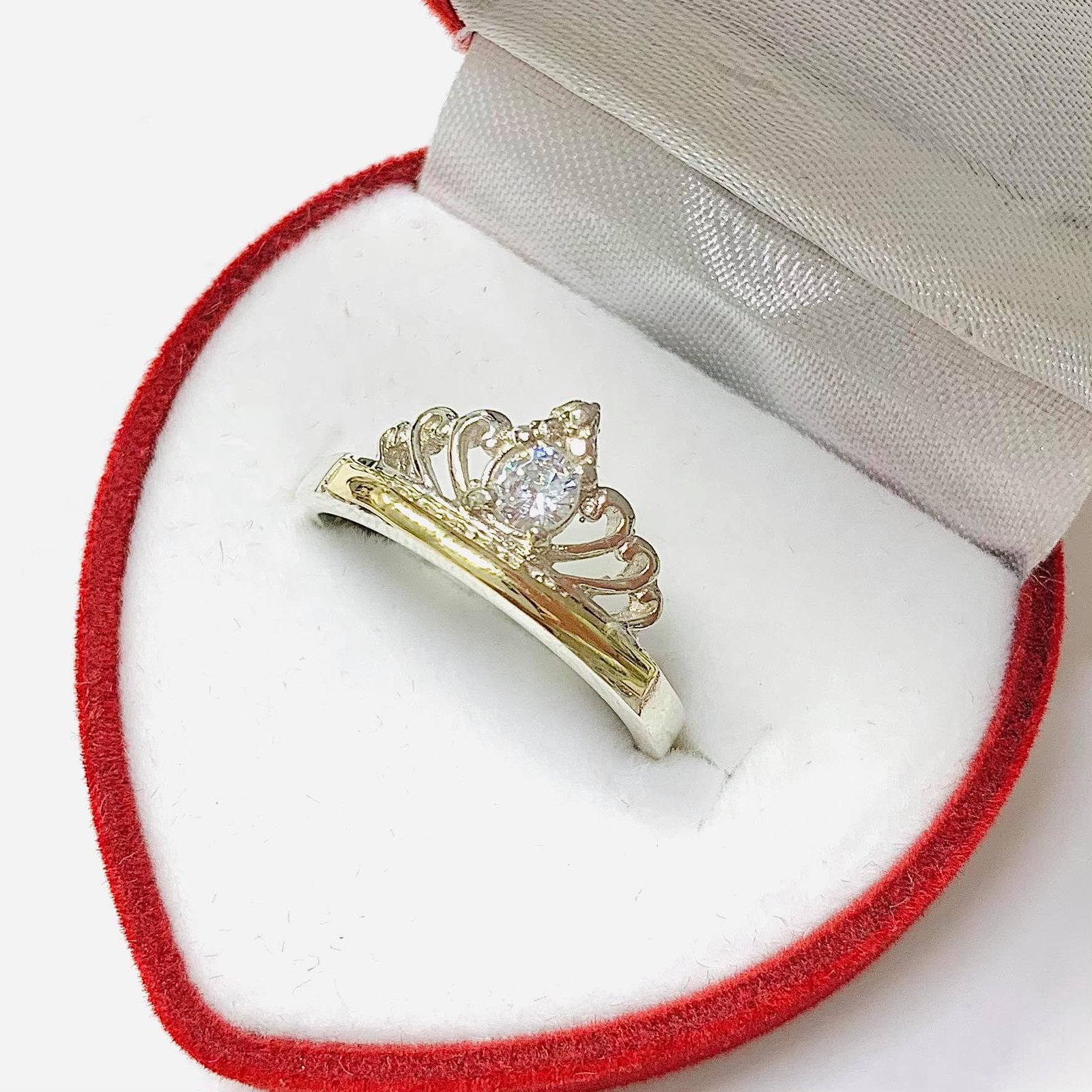 anillo tiara con cubic blanco Plata y oro