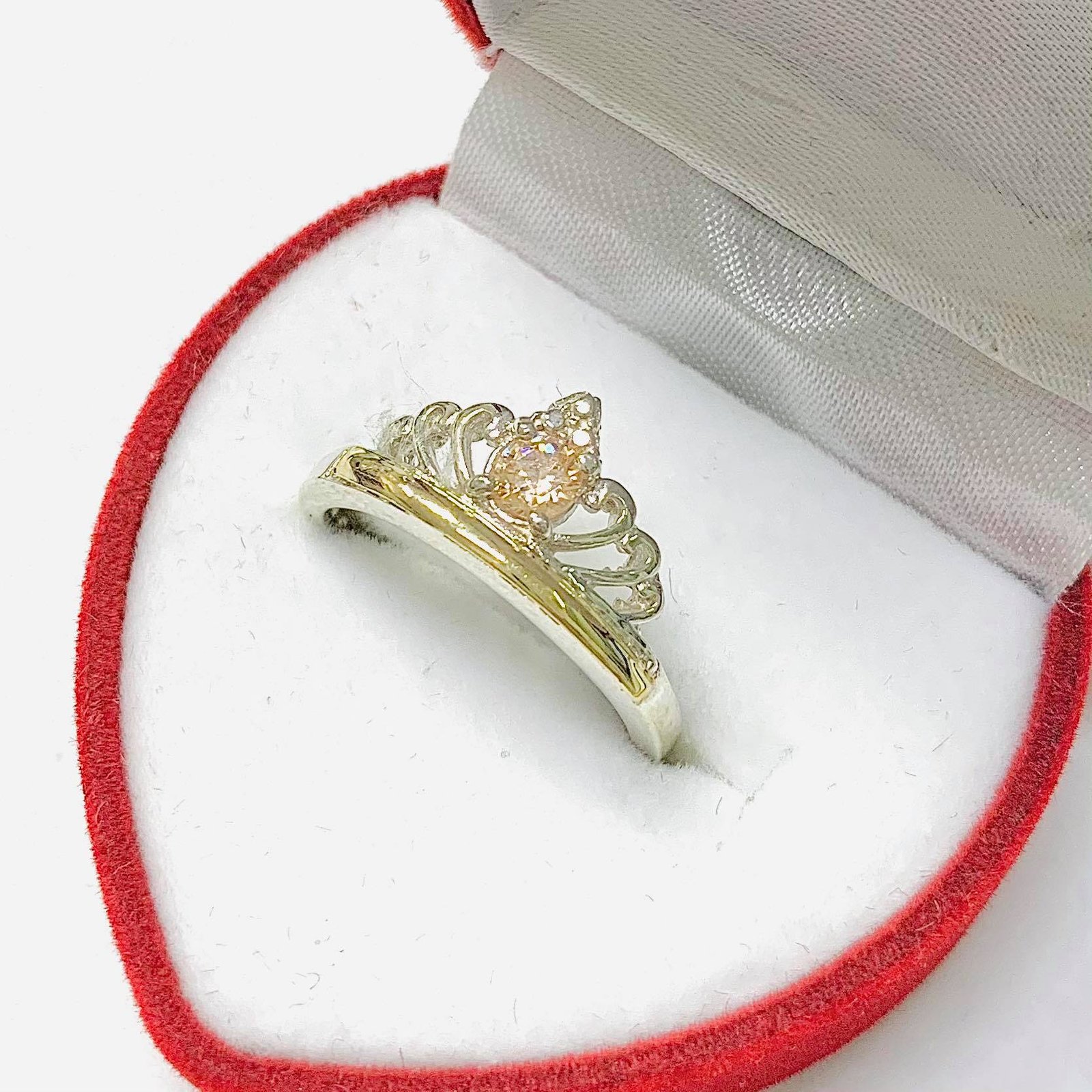 anillo tiara con cubic ambar Plata y oro