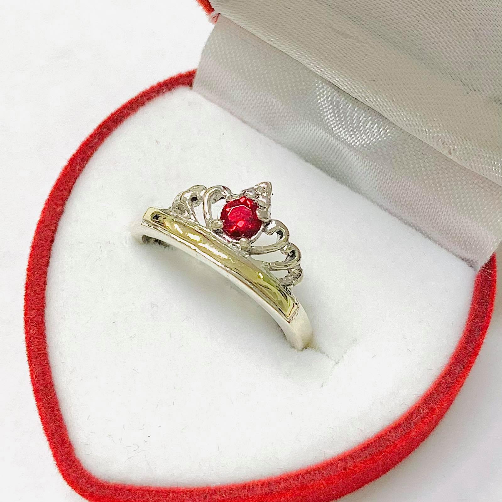 anillo tiara con cubic rubi Plata y oro