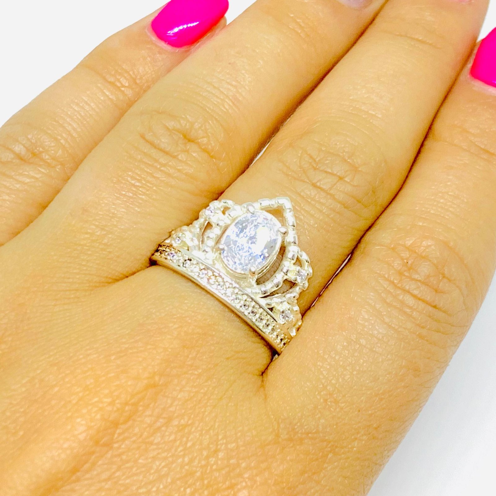 Anillo Corona de Casamiento con Cubic Ovalado 8x6mm Plata 925