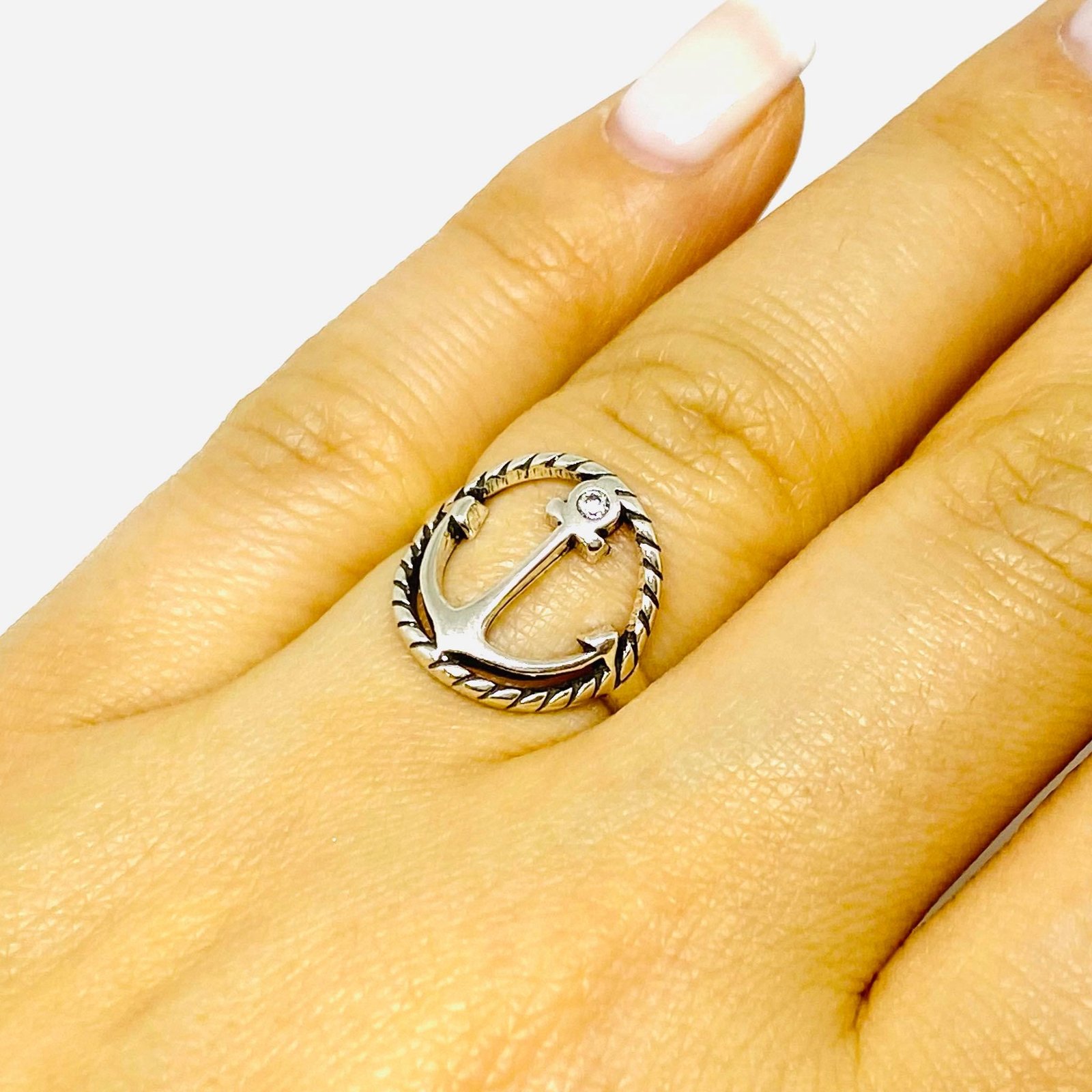 Anillo Ancla con cubic Blanco Plata 925