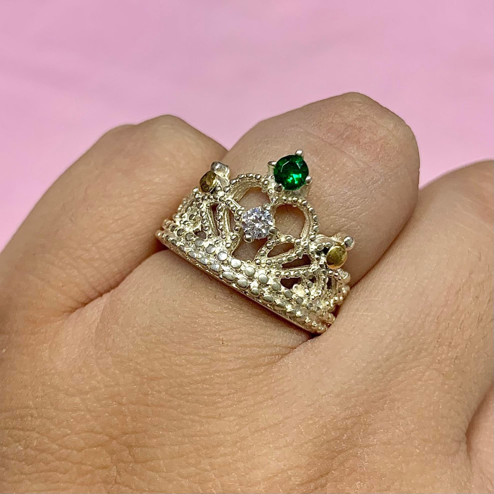 Anillo corona con cubic esmeralda-blanco