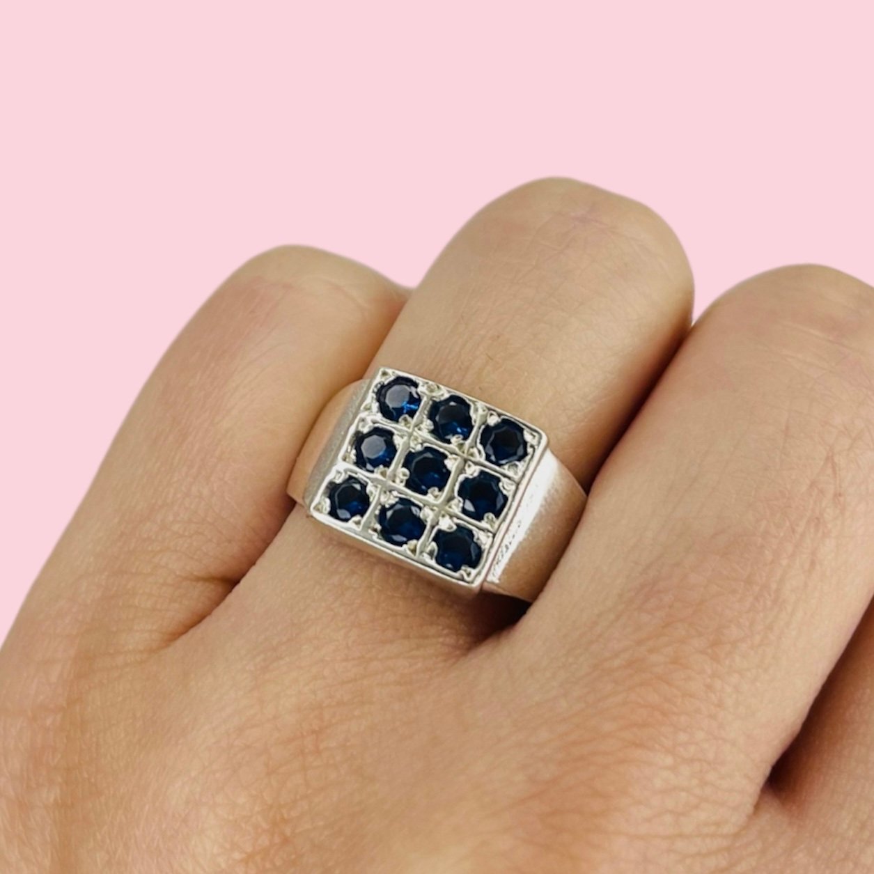 Anillo sello Cuadrado con Piedras Zafiro Plata 925
